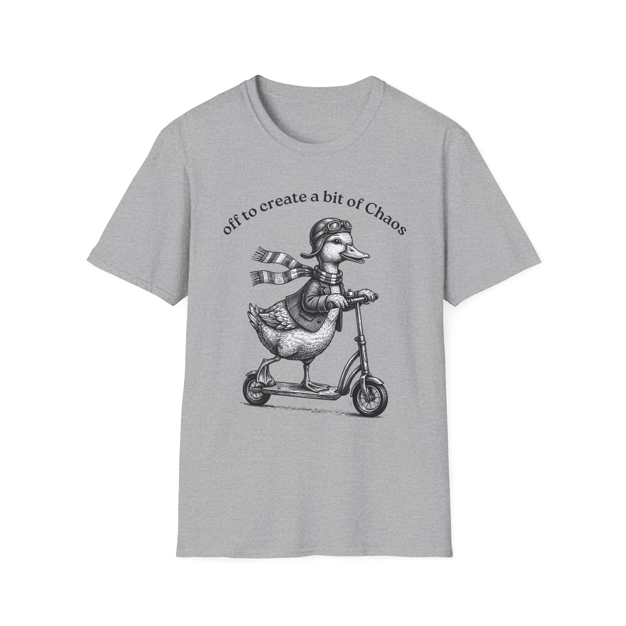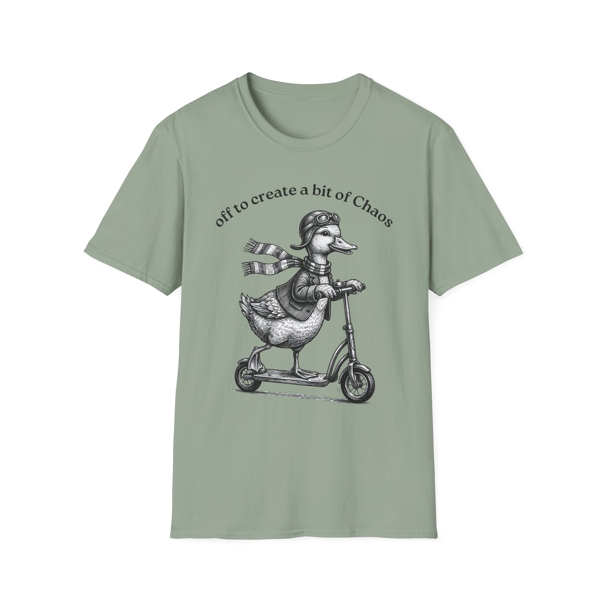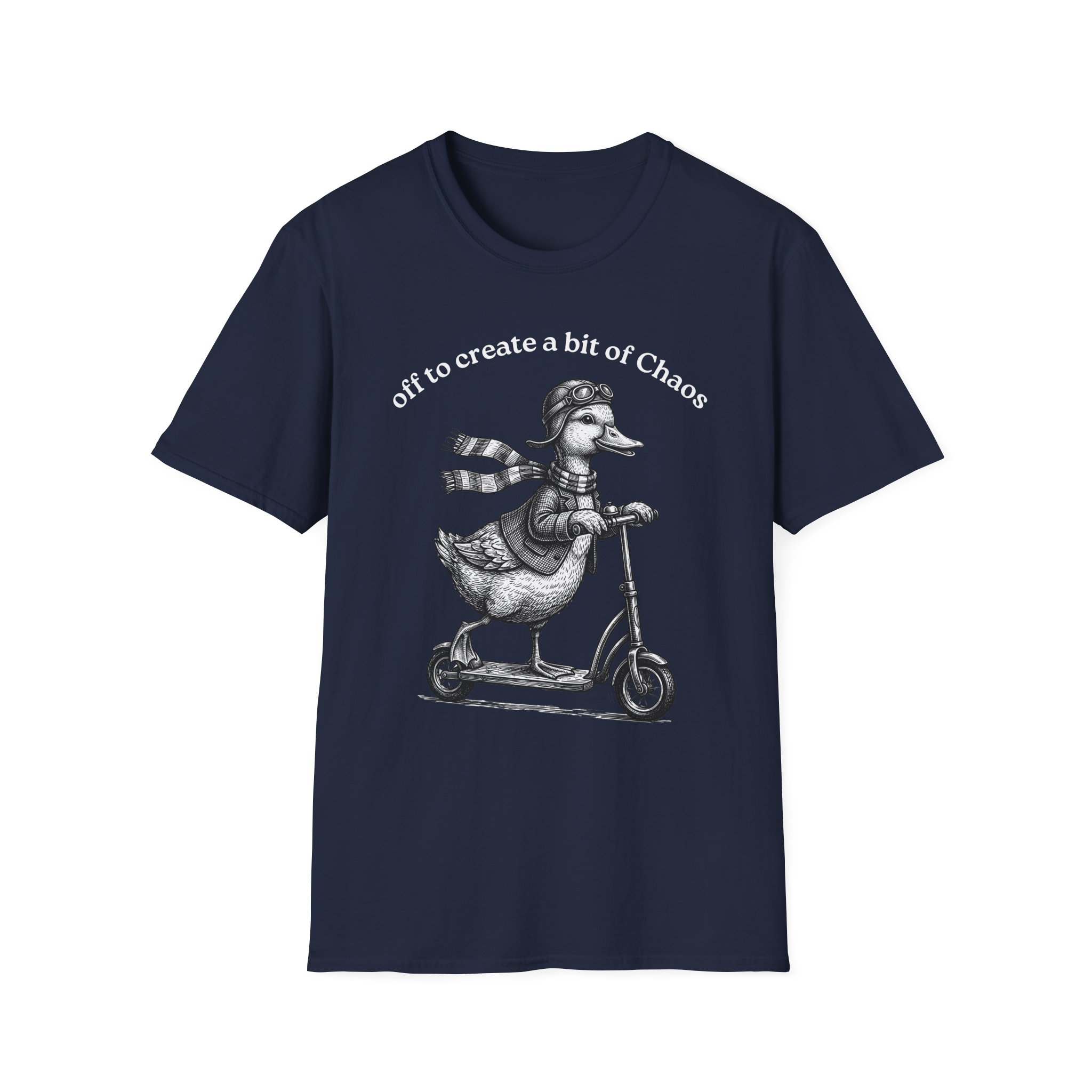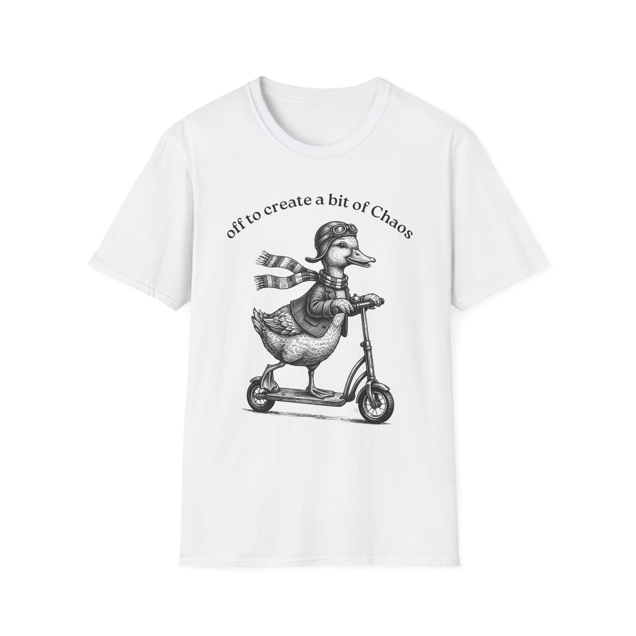Add personality and charm to your wardrobe with this duck scooter tee. Featuring a detailed vintage-style illustration of a duck wearing aviator gear and riding a scooter, this design blends humor, adventure, and retro aesthetics. Perfect for animal lovers, quirky fashion fans, or anyone who enjoys unique, eye-catching designs that bring fun and character to everyday outfits.
