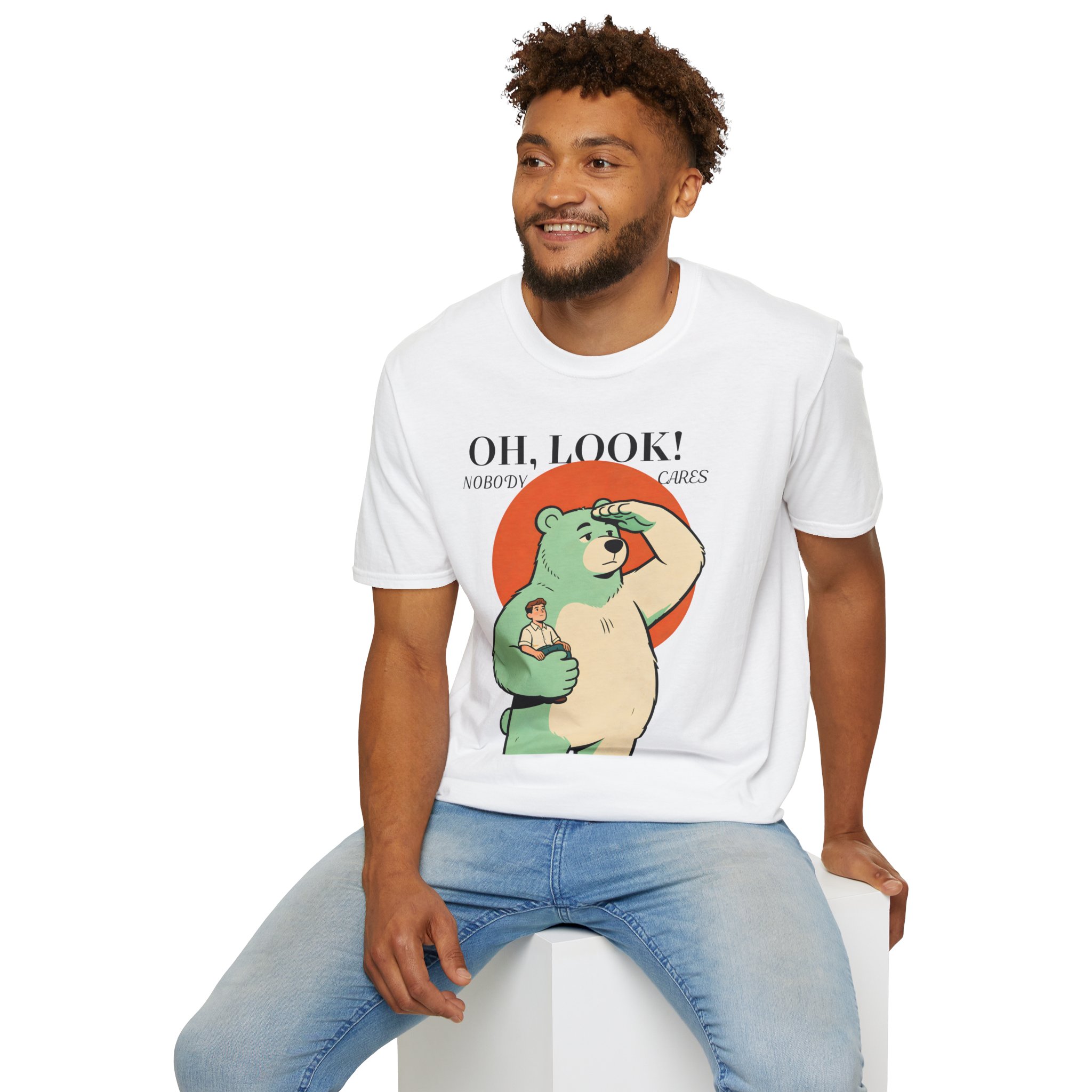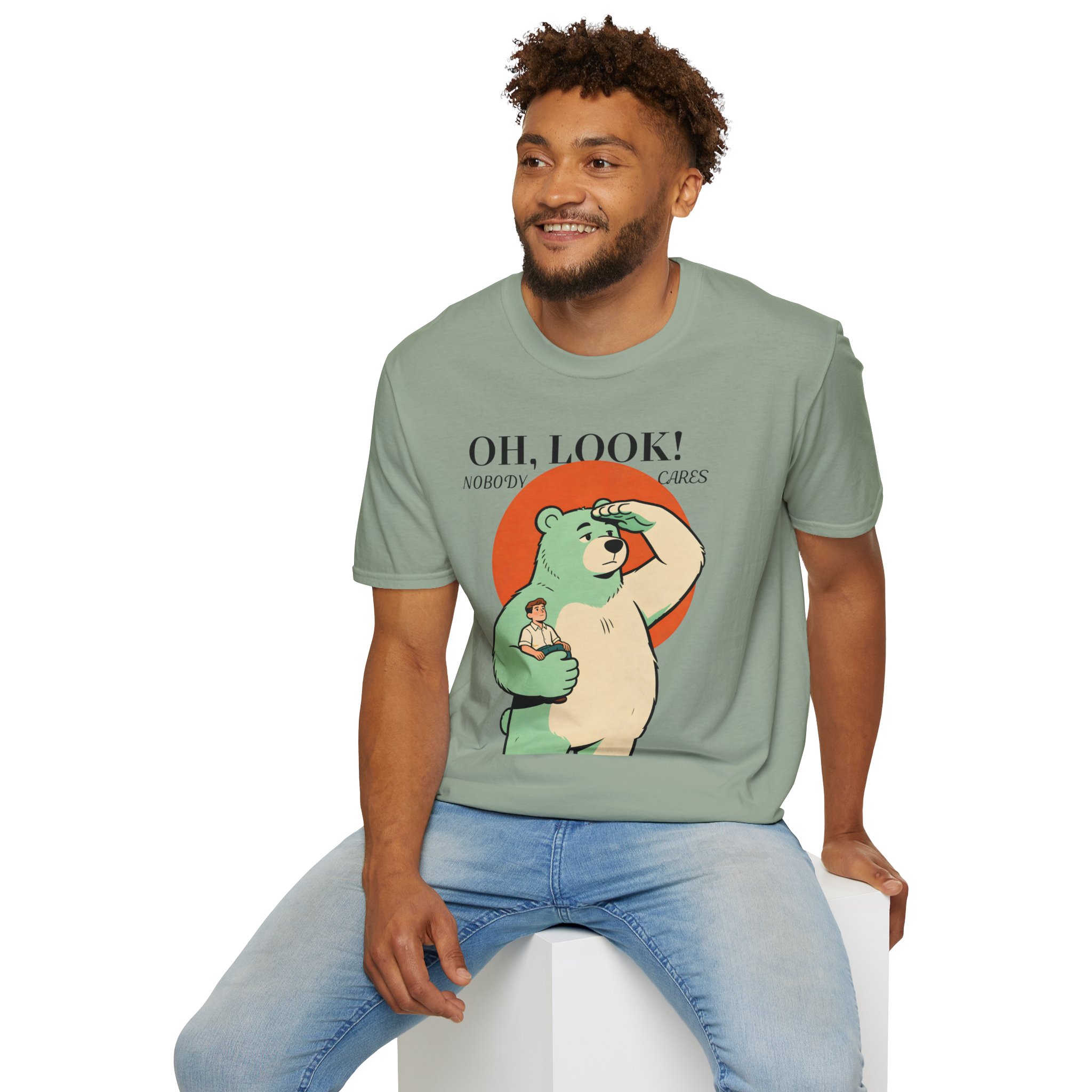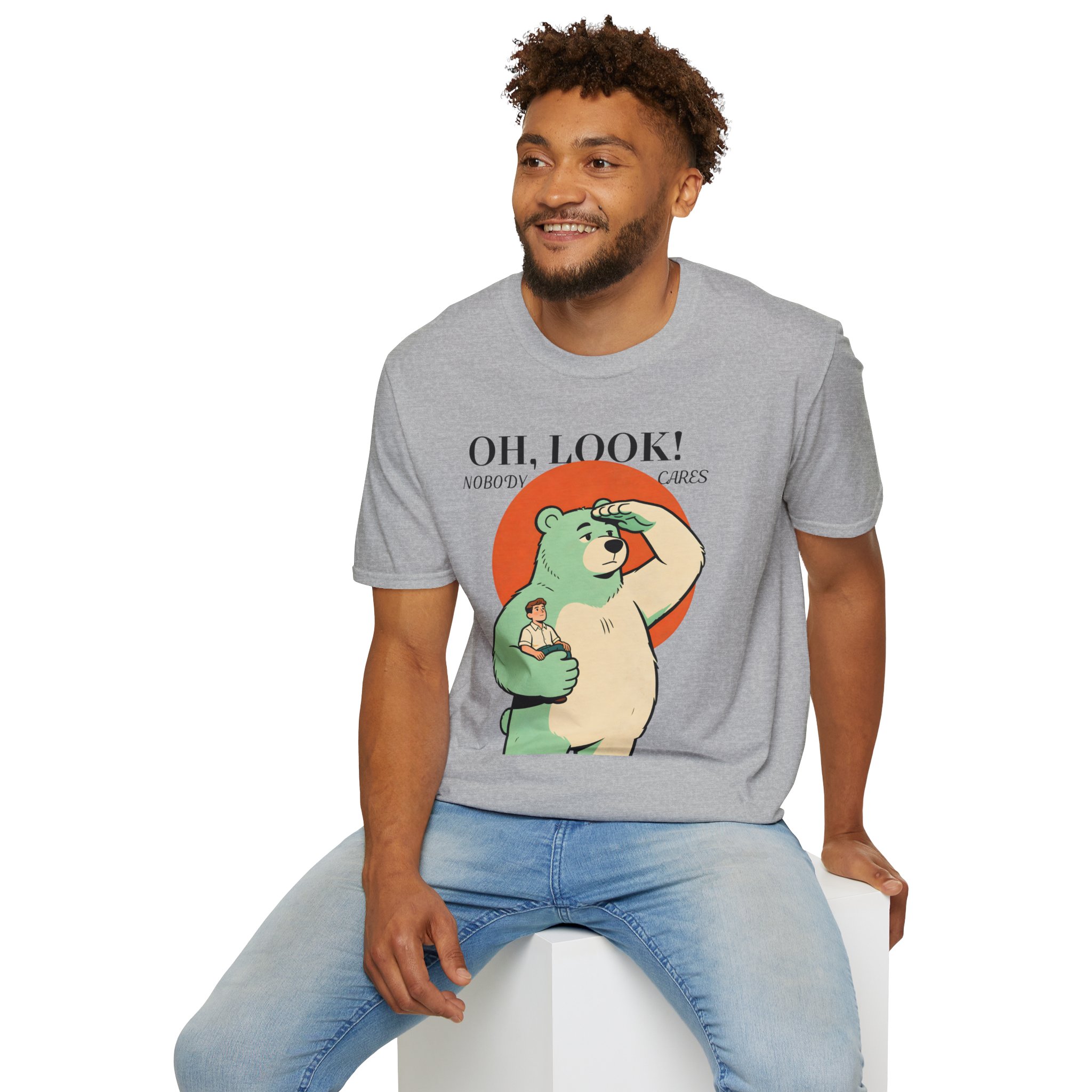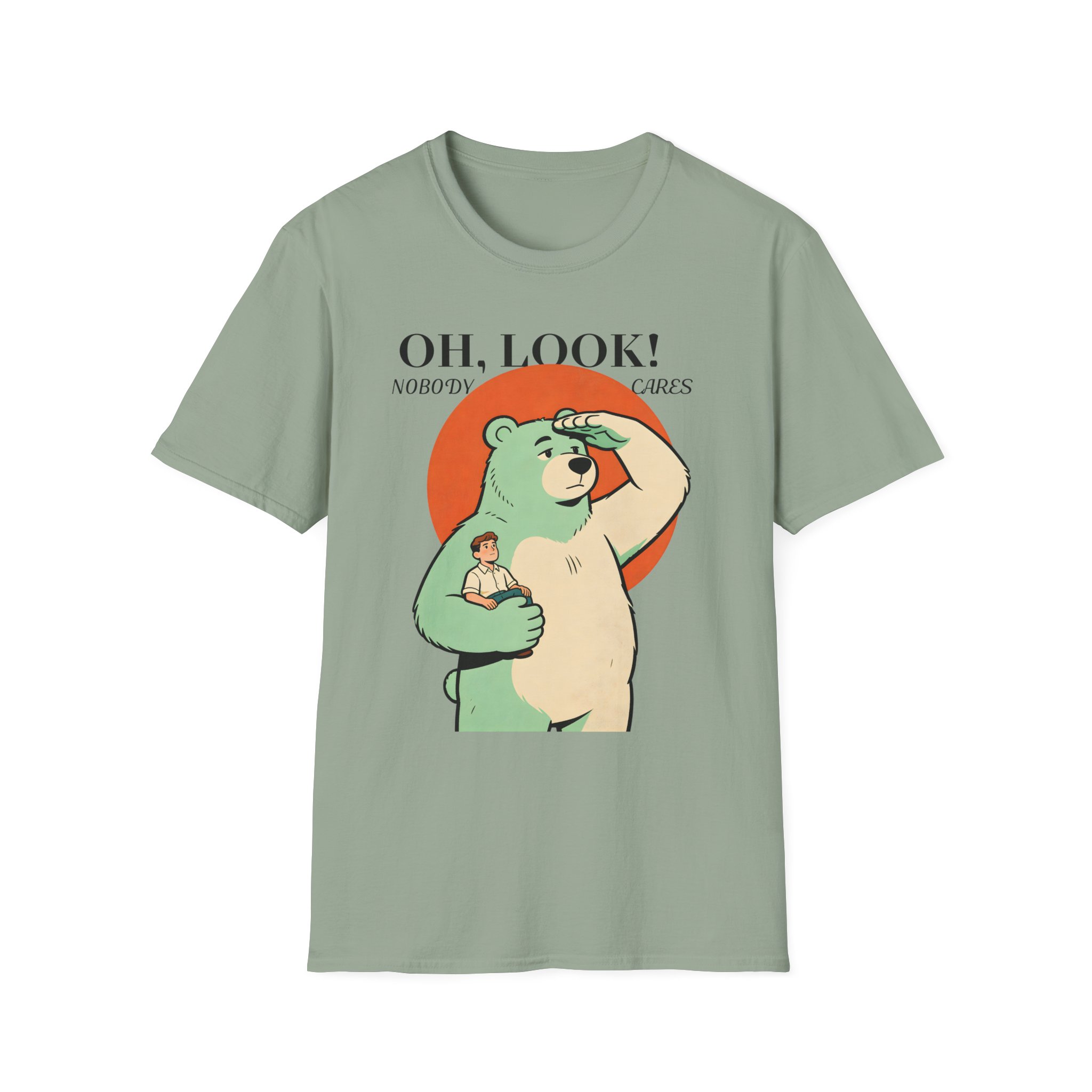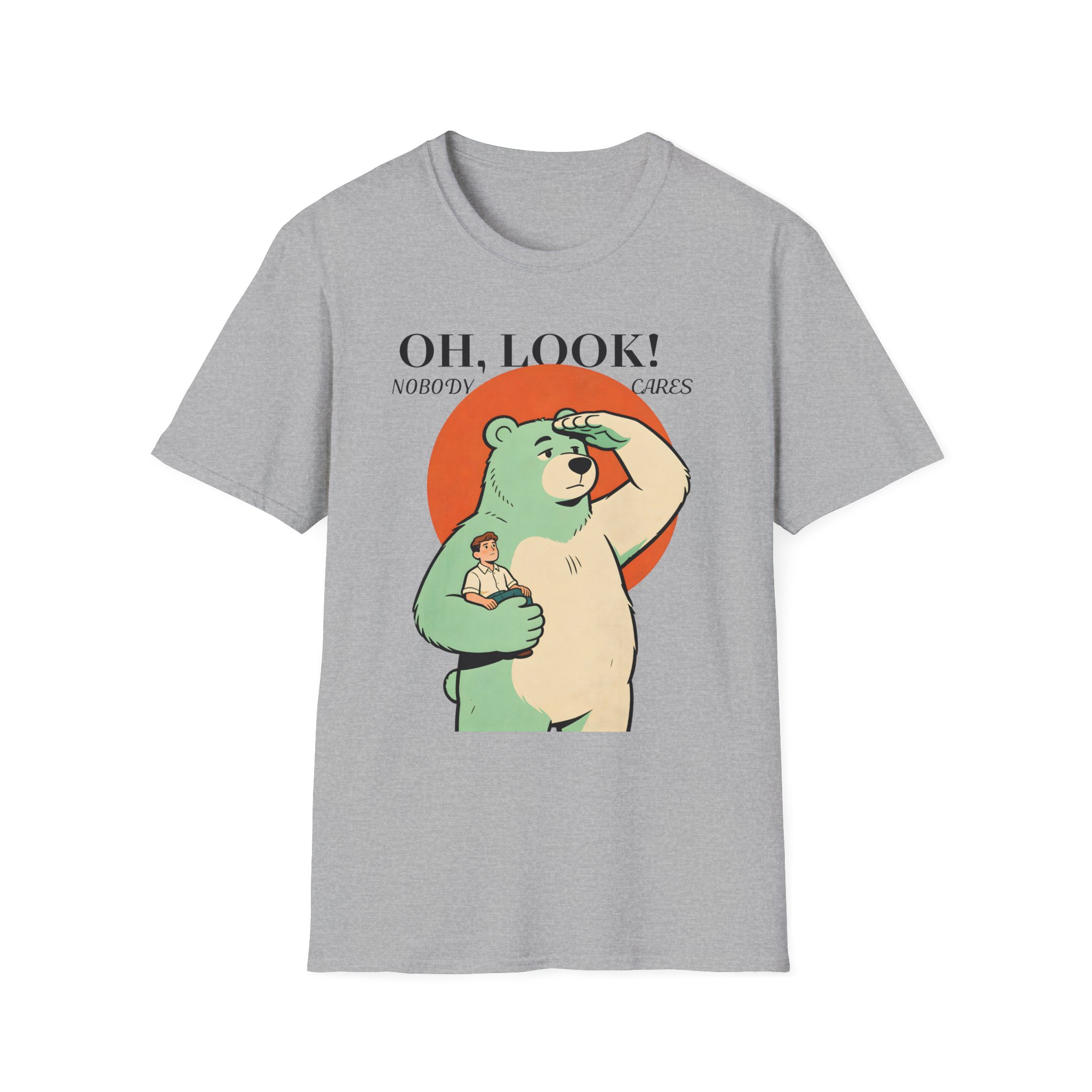 Stand out with this playful and unique graphic tee featuring a calm bear holding a tiny human while scanning the horizon. Blending humor with a clever twist on perspective, this design sparks curiosity and conversation. Soft, breathable, and comfortable, it’s perfect for those who love creative, quirky, and eye-catching apparel.