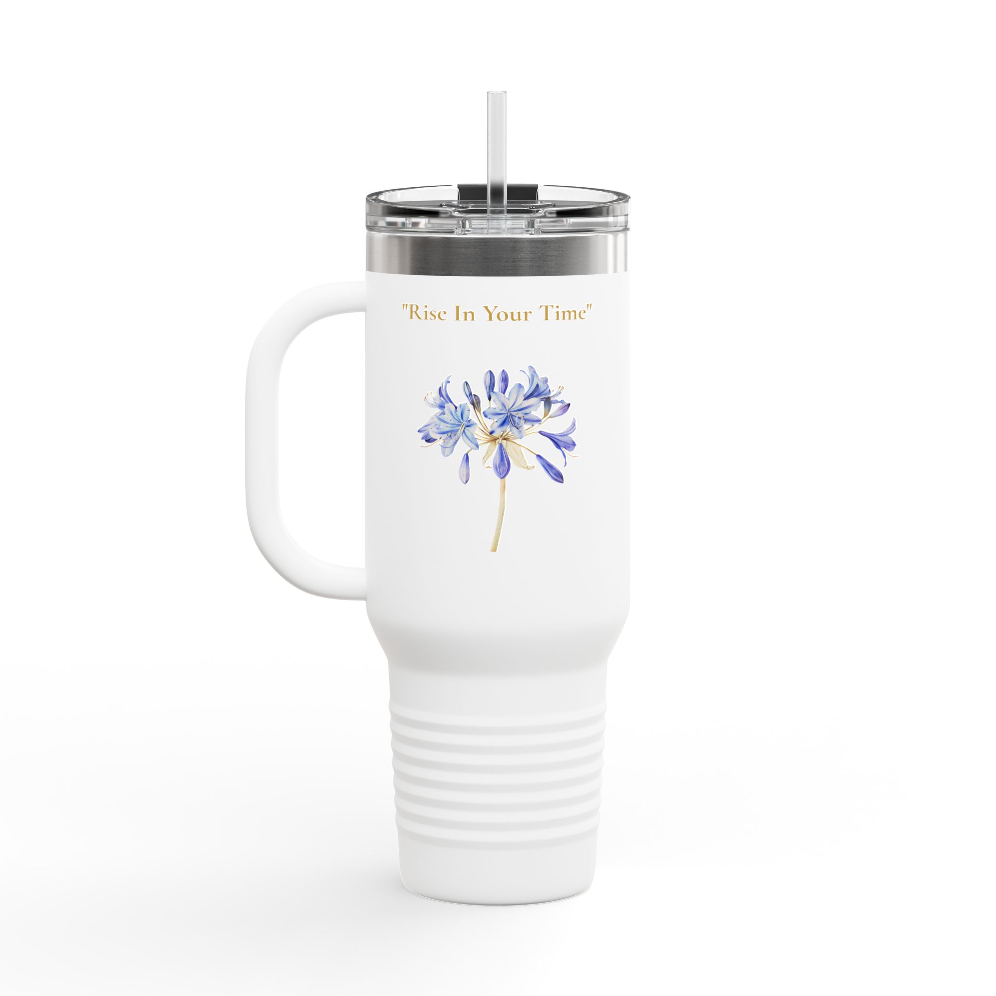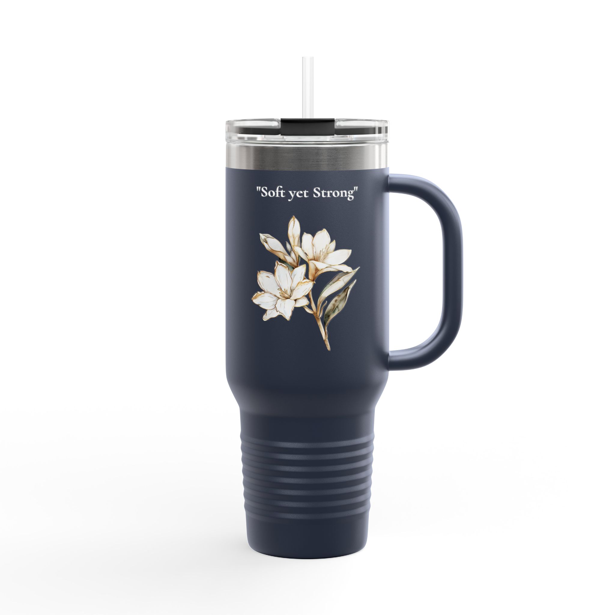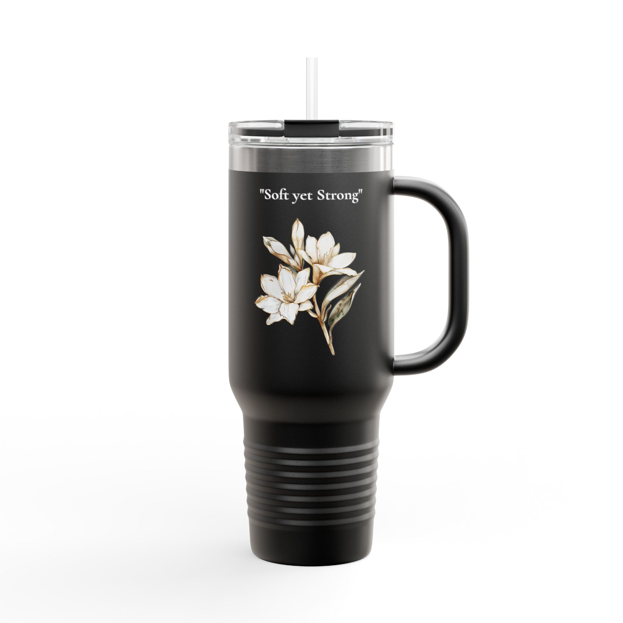 Start your day with a reminder that strength can be gentle. This elegant 40oz insulated travel mug features delicate tuberose and agapanthus flowers paired with the empowering message “Soft Yet Strong – Rise in Your Time.” Designed for those who grow at their own pace, this floral tumbler blends beauty, motivation, and practicality for everyday adventures.