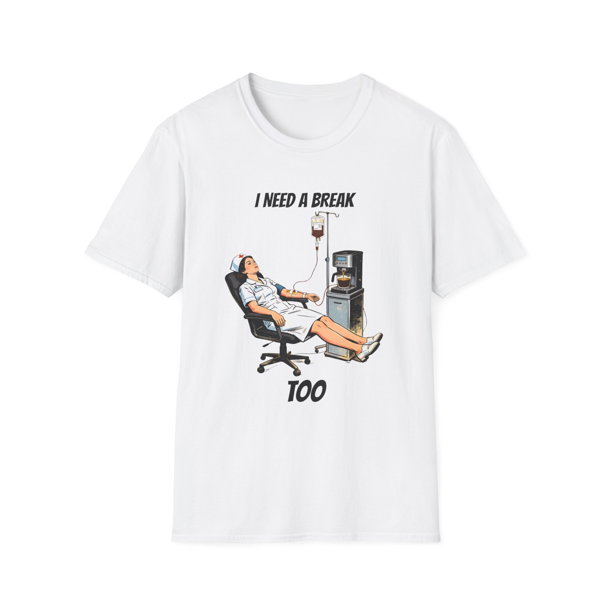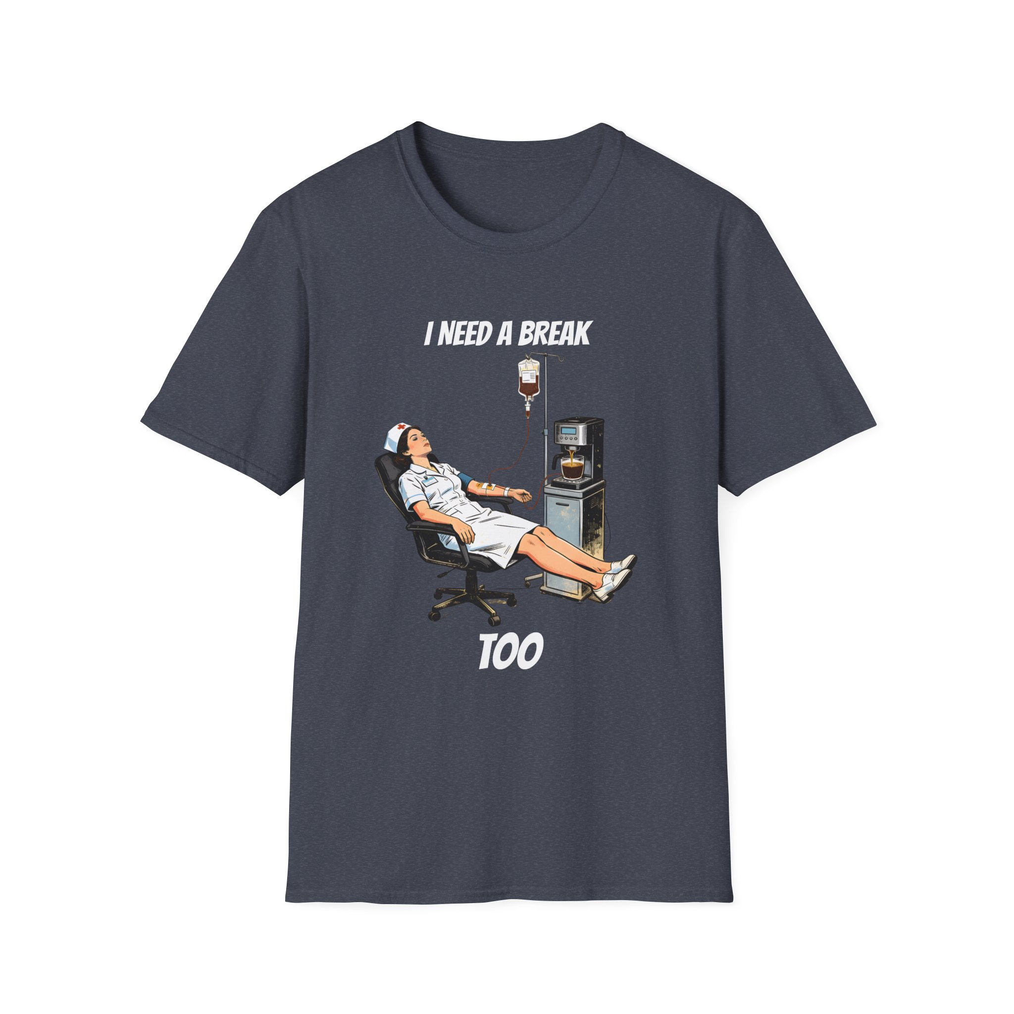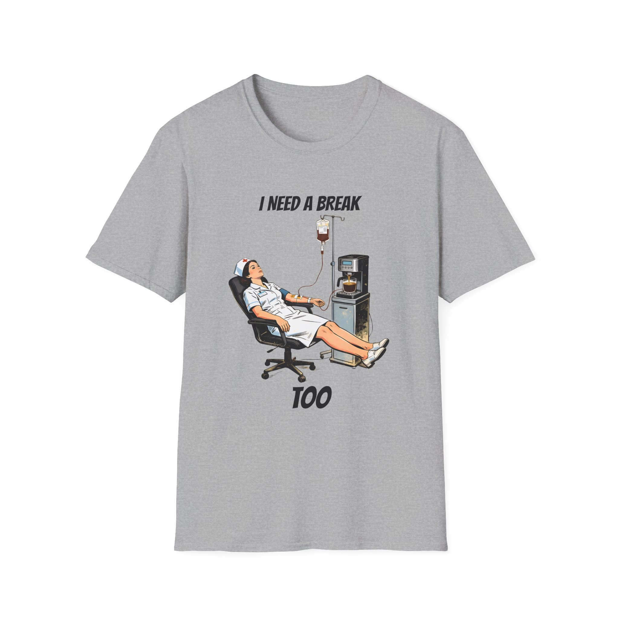 This lightweight crew tee features a clever and humorous illustration of a nurse receiving a coffee IV drip straight from a machine—perfectly capturing the caffeine-fueled reality of long hospital shifts. With a vintage-inspired style and relatable concept, this design is both funny and instantly recognizable.