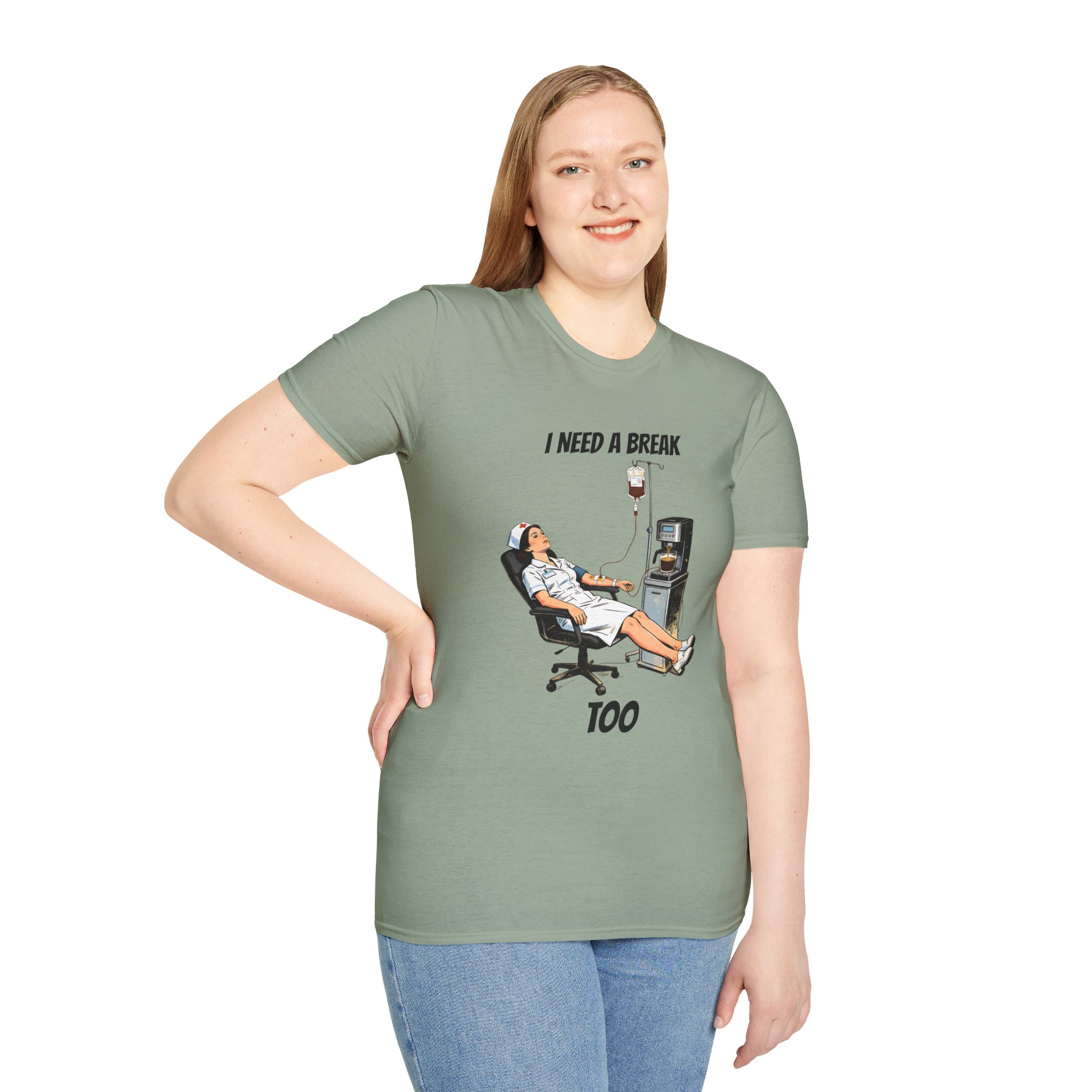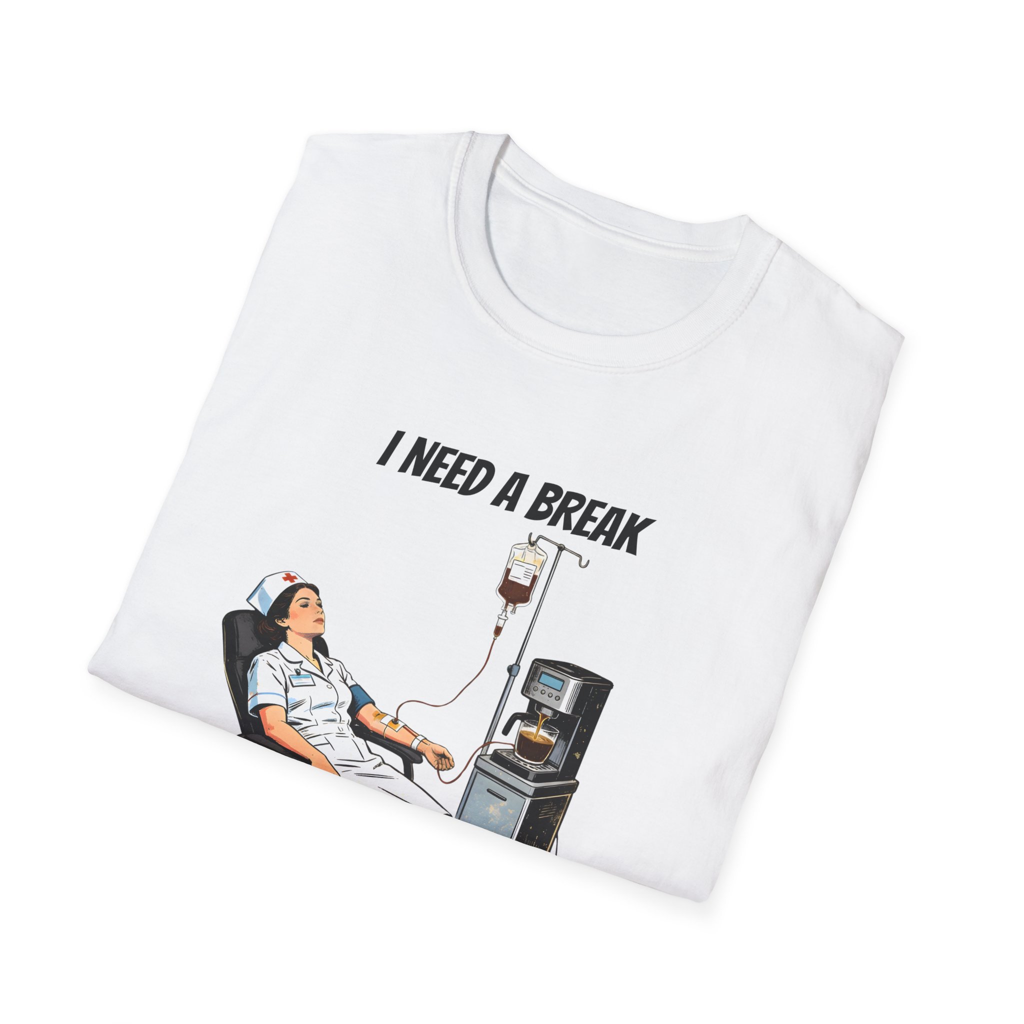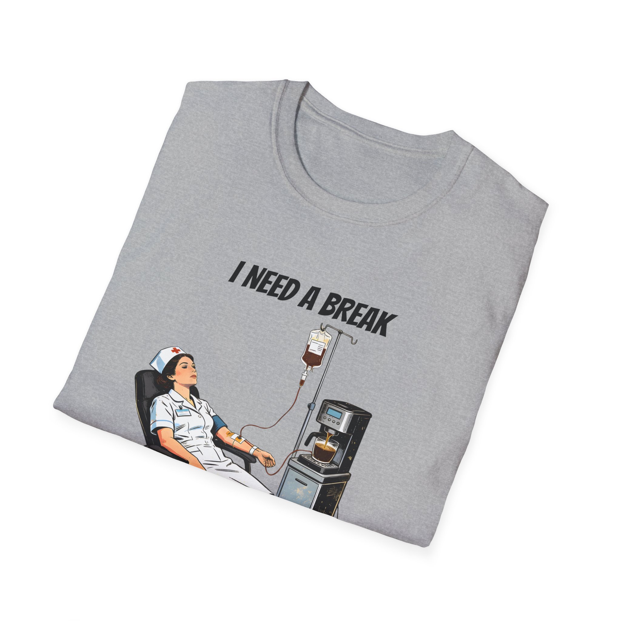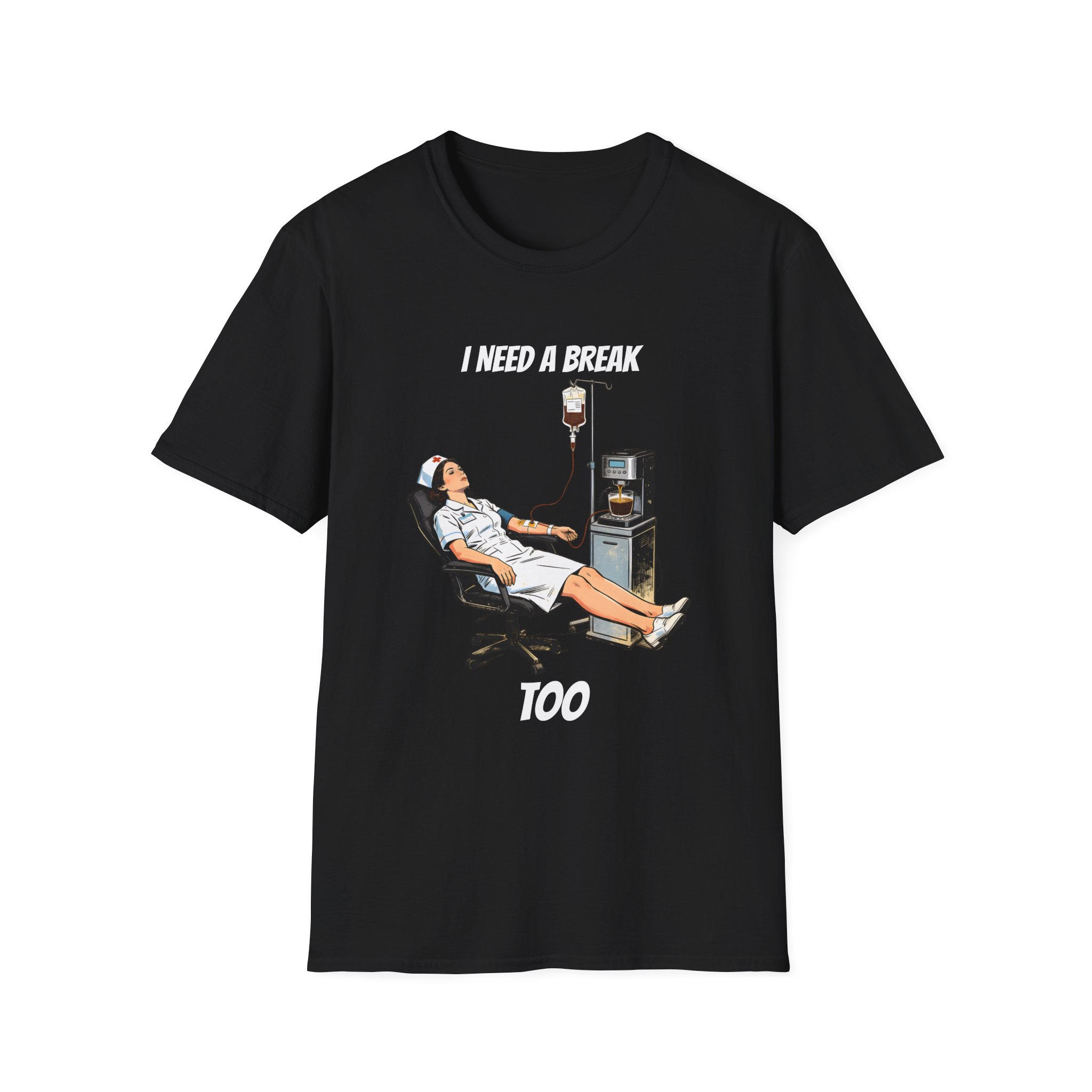 This lightweight crew tee features a clever and humorous illustration of a nurse receiving a coffee IV drip straight from a machine—perfectly capturing the caffeine-fueled reality of long hospital shifts. With a vintage-inspired style and relatable concept, this design is both funny and instantly recognizable.