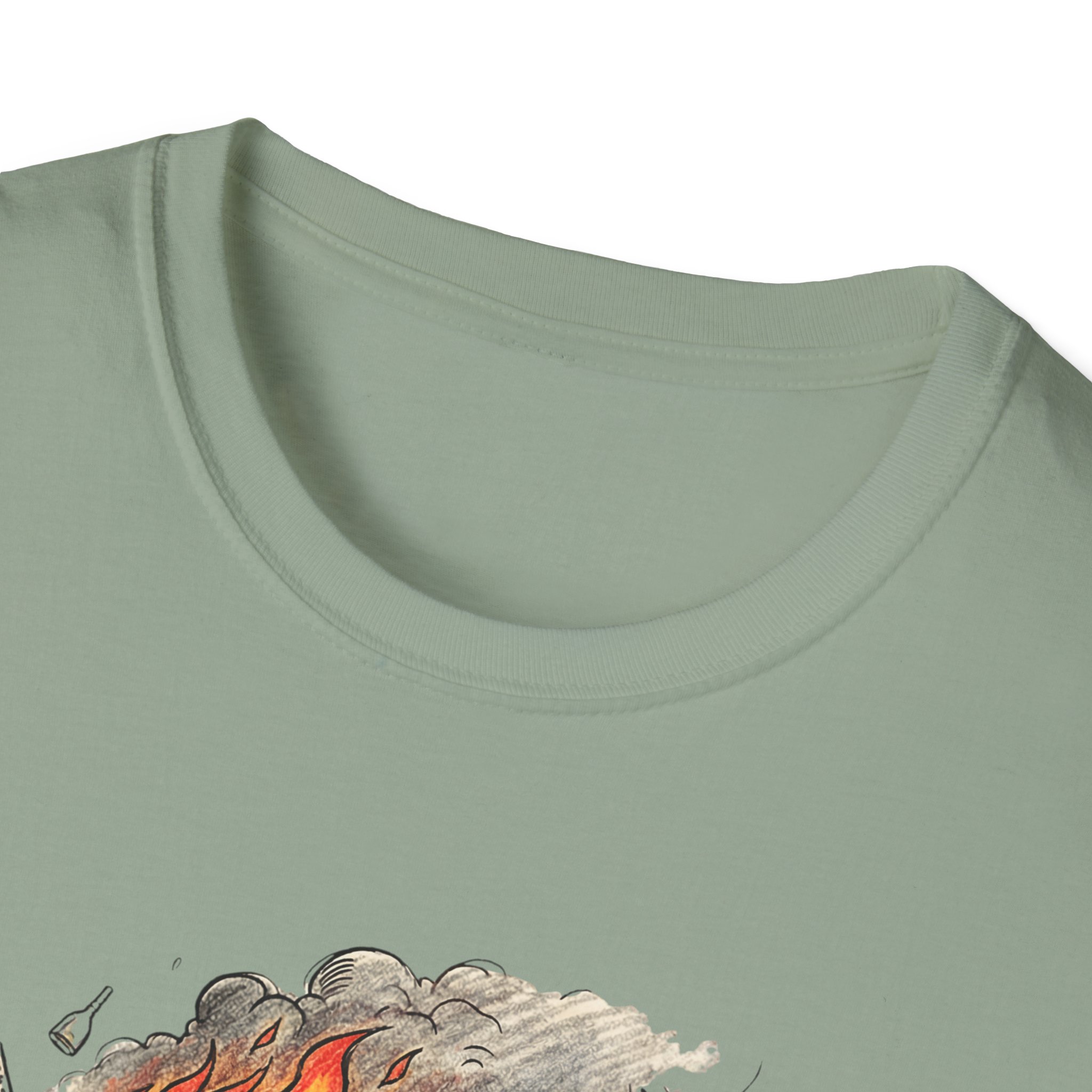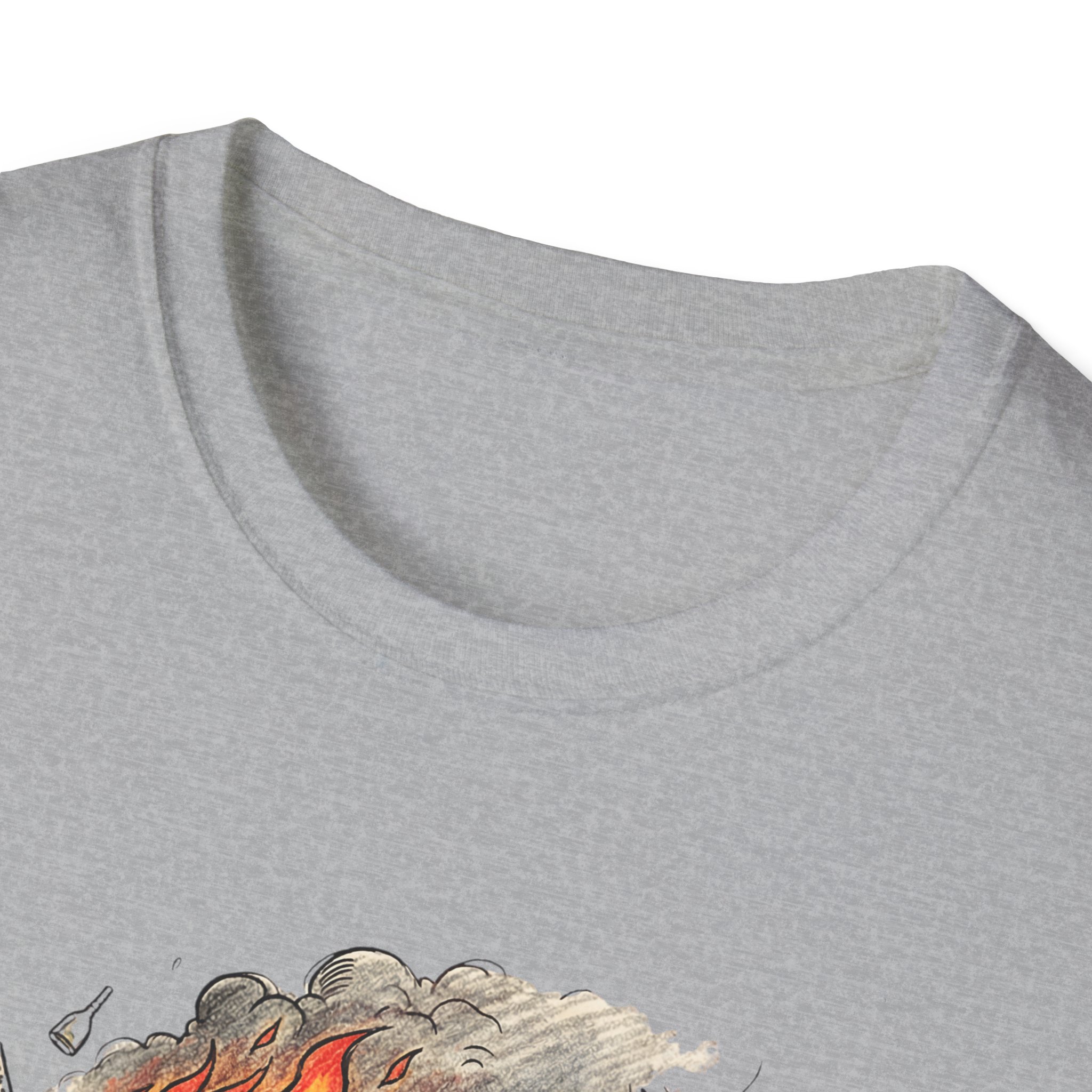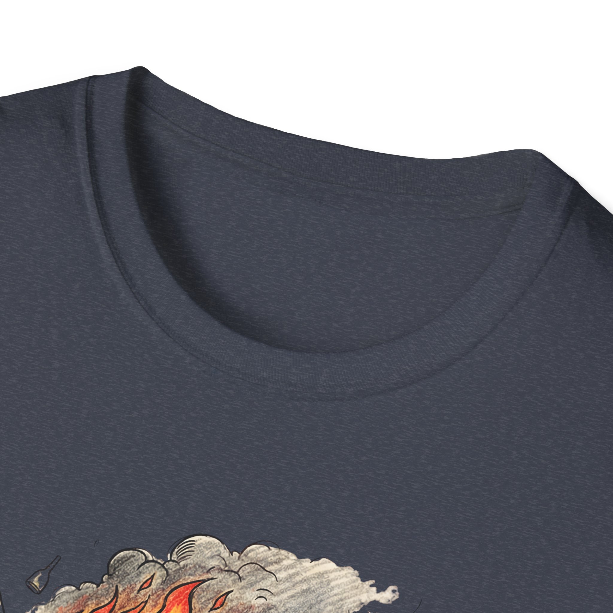 This lightweight crew tee showcases a striking and humorous illustration of a nurse calmly walking away with coffee in hand while a hospital burns behind her. The design perfectly captures the reality of burnout, stress, and keeping it together—blending dark humor with a bold vintage-inspired style.